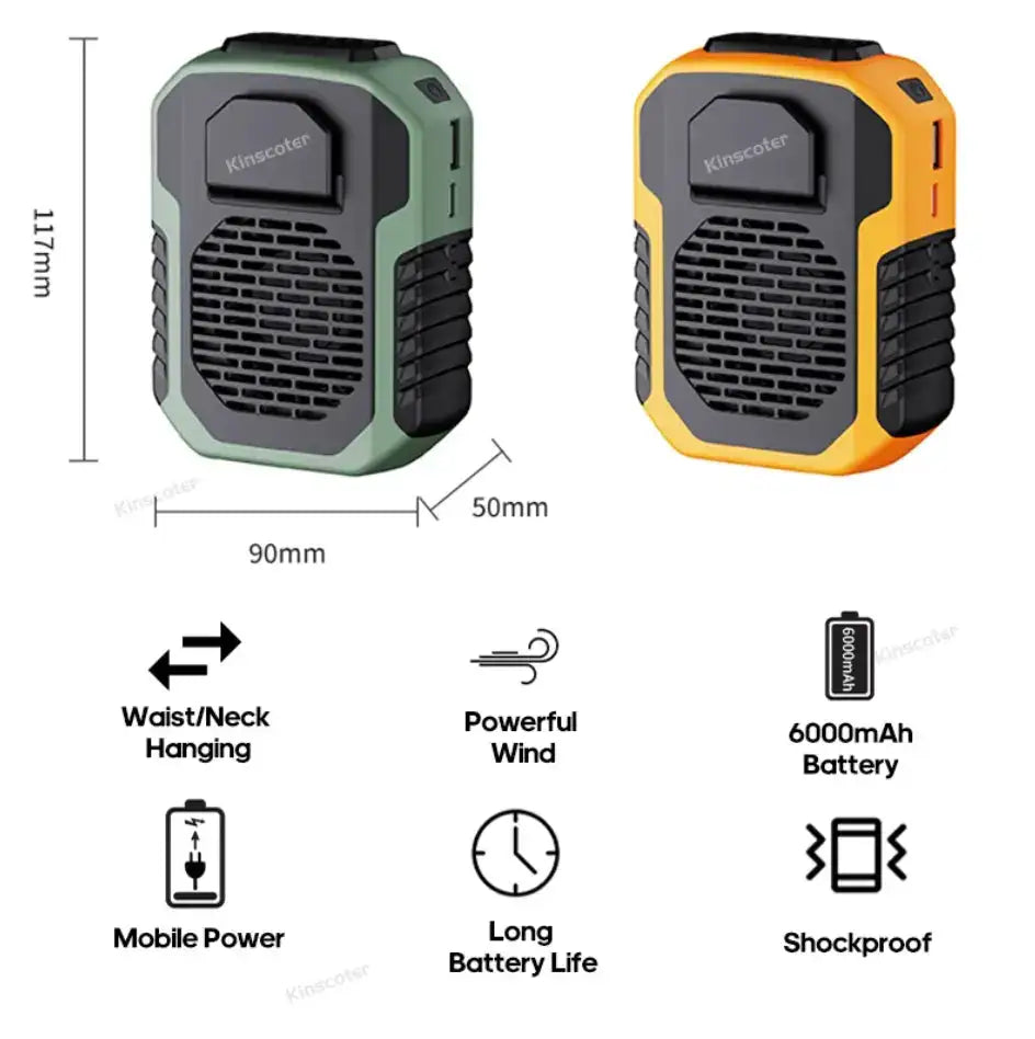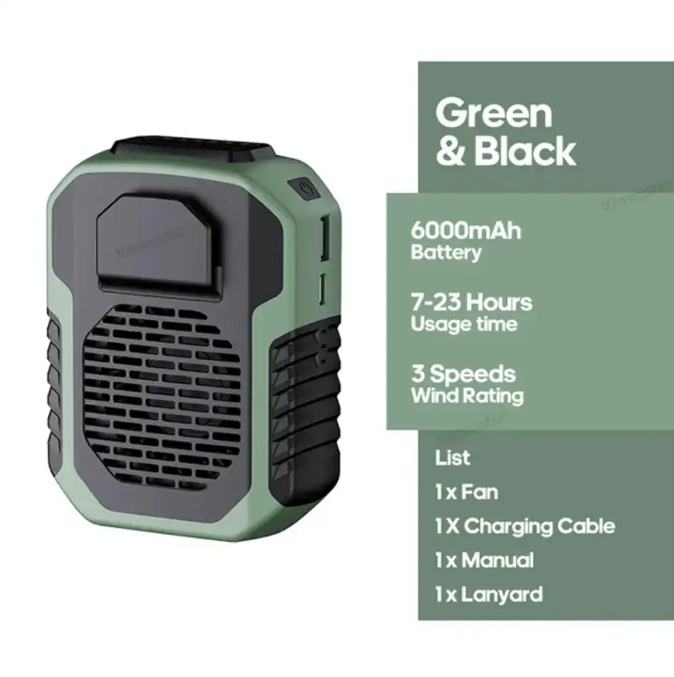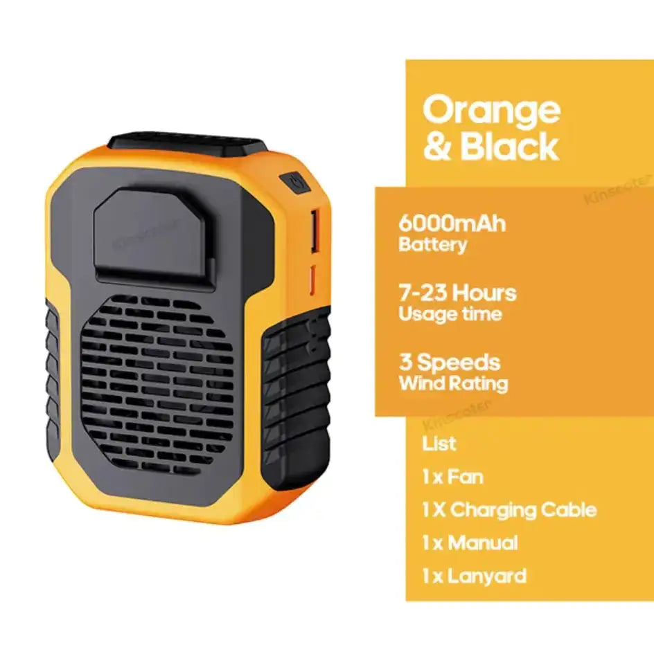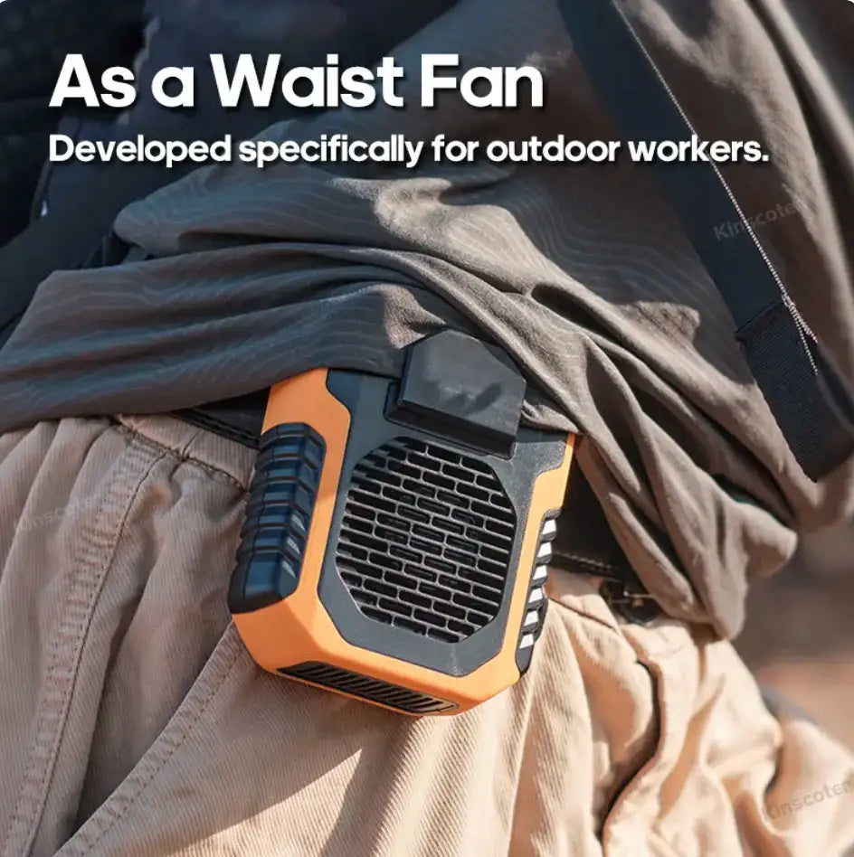 Beat the summer heat with the Waist Fan. Customizable Cooling: With three different wind speeds to choose from, you can easily find the perfect setting to keep you cool and comfortable all day long. Enjoy the refreshing breeze without any distracting noise. Our waist fan is designed to be completely silent, ensuring you can stay focused and undisturbed whether you're working, relaxing, or spending time with loved ones.